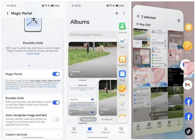 - Magic Portal: قابلیت هوشمند درگ و دراپ که با نگهداشتن روی متن یا تصویر، پیشنهادهایی برای ارسال، ذخیره یا ایجاد یادداشت ارائه میدهد.