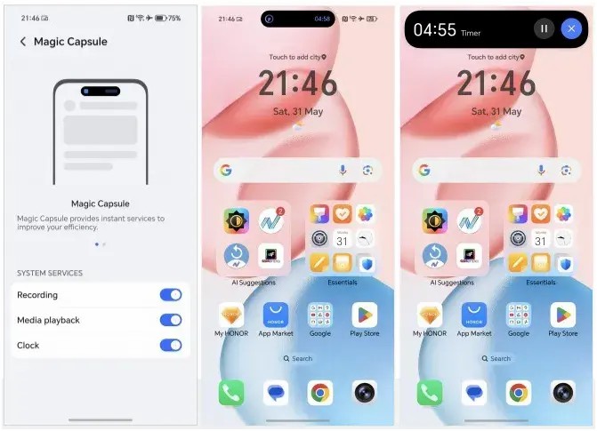 - Magic Capsule: اعلان شناور و کپسولیشکل برای نمایش و کنترل سریع فعالیتهایی مثل پخش موسیقی، تایمر و ویدیو، بدون نیاز به خروج از برنامه فعلی.
