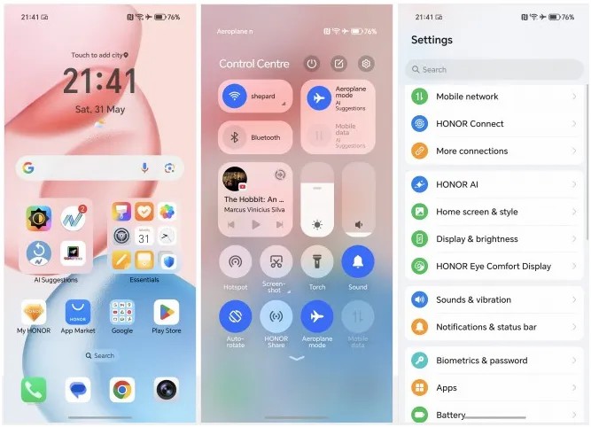 - Honor Share: انتقال سریع فایل بین دستگاهها، حتی بین گوشی آنر و آیفون، با تجربهای مشابه AirDrop.